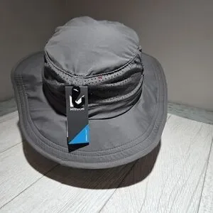 This charcoal brim hat features a solid pattern, one size fits all design, and is made by the popular brand Mission. Perfect for men who enjoy outdoor activities, this hat is a stylish and practical addition to any wardrobe