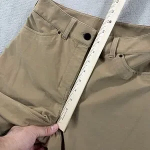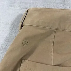 The Lululemon City Sleek Utilitech Extra-Wide-Leg Pants in Filbert Tan are a stylish and versatile option for casual wear. These high-rise chino-style pants feature a relaxed fit with wide-leg design, making them perfect for the summer, fall, and spring seasons. With a comfortable inseam of 32 inches and a waist size of 26 inches, these pants are easy to care for with machine washable instructions. The beige color and solid pattern add a classic touch to the garment, while the logo accents give it a unique flair. Made with quality materials and attention to detail, these pants are a fashionable choice for everyday wear.