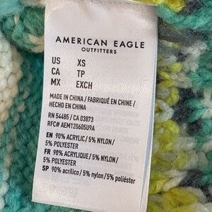 American Eagle Nordic floral fair isle oversized cozy sweater size XS. The approx measurements are armpit to armpit is 23 inches and the length from shoulder to hem is 26 inches. It has some marks on the inside label otherwise in great like new condition.