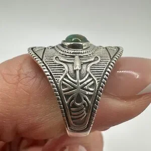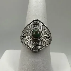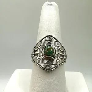 Sterling silver, marked "GSX" turquoise round cabochon ring!