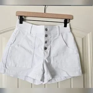Evereve White High-Waist Button Front Shorts, Size 27