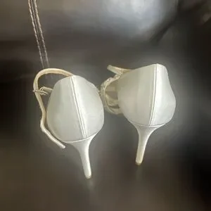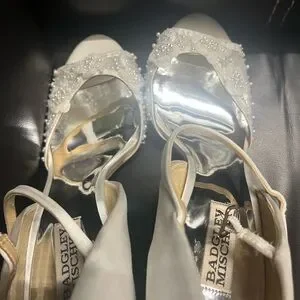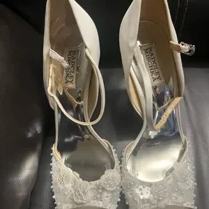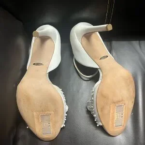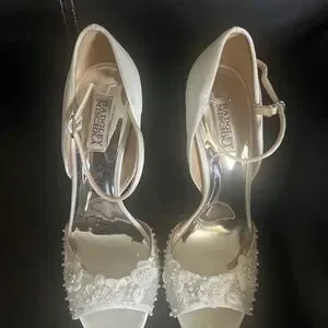 These exquisite white heels by Badgley Mischka are adorned with sparkling embellishments, making them a perfect choice for formal events. The elegant design and sophisticated style ensure a standout appearance, while the high heel adds a touch of glamour.