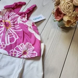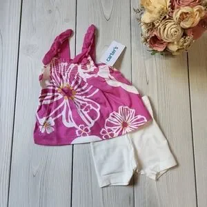 Carter's tropical pink tank top and white short set Size 3 MO NWT