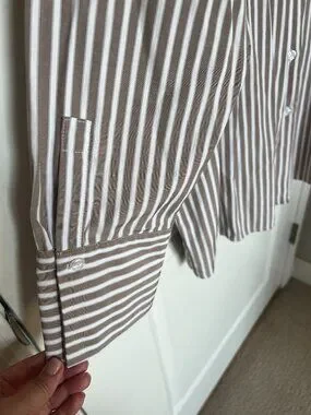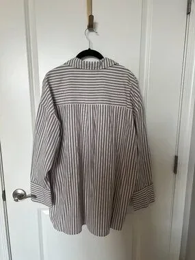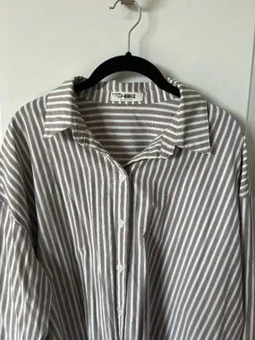 4th & Reckless casual button-up blouse with 3/4 sleeves and striped detail—easy workwear or everyday top.