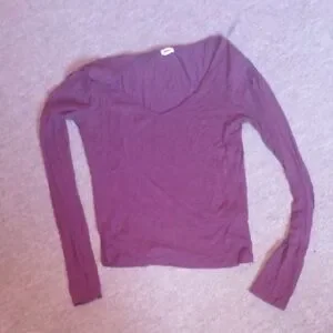 Soft, lightweight long sleeve scoop neck top in purple. Flattering slim fit that layers easily. Fits like a medium