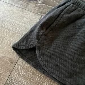Brandy Melville Summer Thermal Shorts Waffle Knit Washed Grey Black O/S