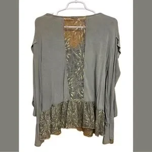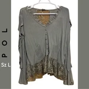 🌾 POL Boutique Boho Lace Patchwork Top Large Flowy Hi Low Cottagecore Soft 💚