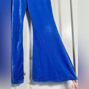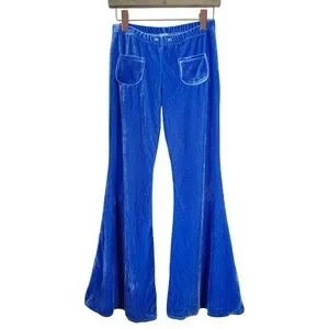 Y2K Groovy Blue Velvet Bell Bottoms