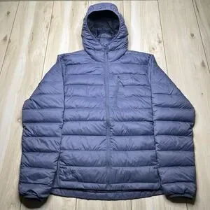 Eddie Bauer 550 Down Puffer Jacket Mens Medium Gray Hooded Lightweight Packable