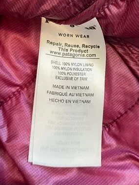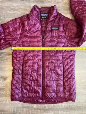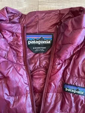 Lightweight quilted jacket from Patagonia in a rich maroon color. Perfect for layering or wearing on its own during transitional seasons. Women’s size small. Measures approximately 18” pit to pit and 22” length. A versatile, high-quality piece for everyday wear or outdoor activities.