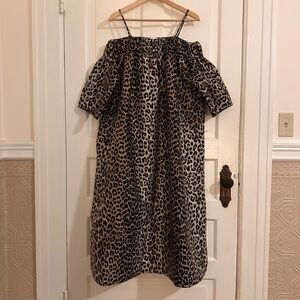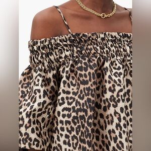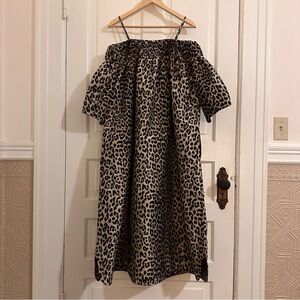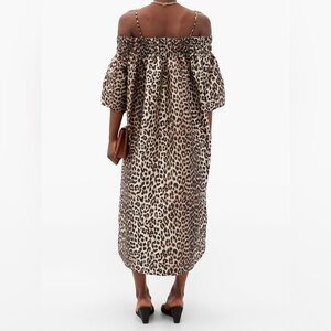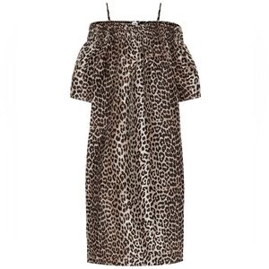 GANNI Leopard Animal Jacquard Dress Crispy Midi Tank Off Shoulder Sz Small / Med