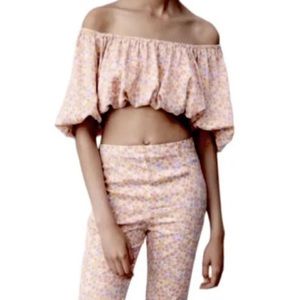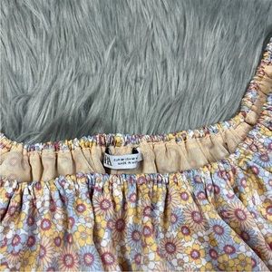 Zara Multicolored Floral Balloon Crop Top Size Medium