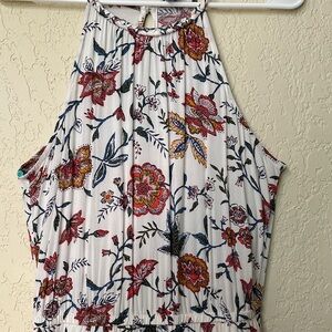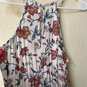 Old Navy White Floral Halter Maxi Dress with Rust Blooms XS
