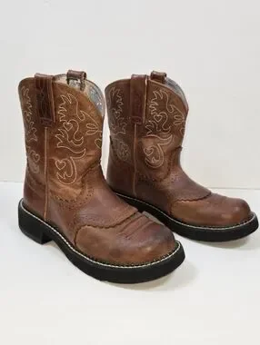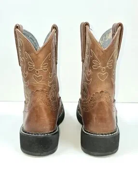 Ariat Fatbaby Brown Leather Chunky Embroidered Western Cowboy Boots Women's 7.5
