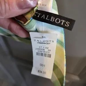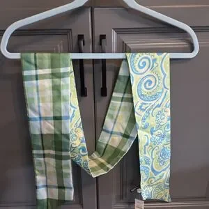 Talbots silk scarf with blue paisley on lime green. Soft, lightweight feel. Bright, eye-catching print. Easy to style with many outfits. NWT