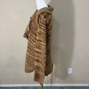 Free People Brown Double Breasted Cardigan Sweater Coat Sz M Boho Grunge Western