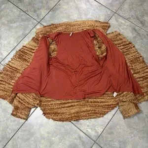 The Free People Brown Double Breasted Cardigan Sweater Coat in size M is a stylish and versatile piece that embodies a bohemian, grunge, and western vibe. Made by the popular brand Free People, this long-sleeve sweater is perfect for adding a chic and comfortable layer to any outfit. The brown color, open design, and lightweight feel make it a great addition to a casual or dressed-up look, ideal for women who appreciate a trendy yet effortless aesthetic.