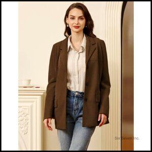 Corduroy Blazer Classic Notched Lapel Boyfriend Fit Office Work Jacket