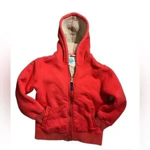 Mini Boden Sherpa Lined Hoodie red/coral | 5-6 Yrs boys kids children