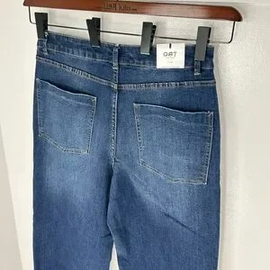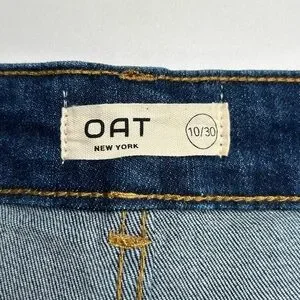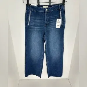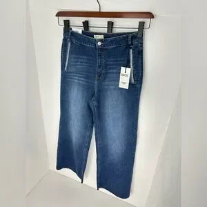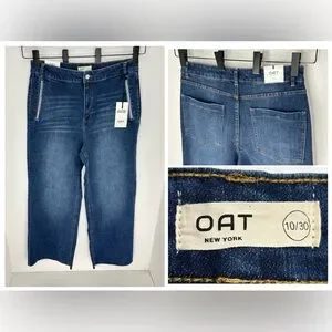 OAT NEW YORK NWT High Rise Wide Leg Jeans 10/30 Rhinestone Pocket Raw Hem