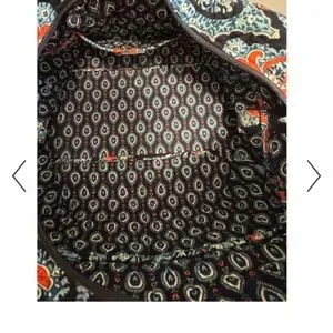 Quilted Vera Bradley travel bag with paisley print. Dual top handles for carrying. Front zip pocket for quick access. Padded, lightweight design for easy travel.