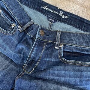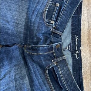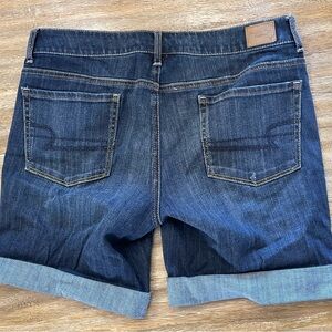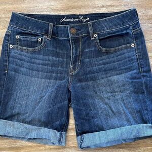 American Eagle Outfitters Dark Blue Rolled Cuff Denim Shorts Bermuda Sz 14 Mid