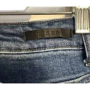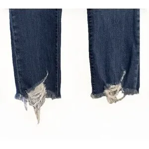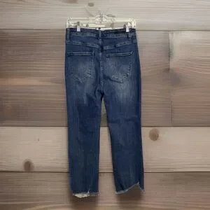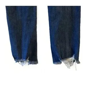 Risen High-Rise Straight Jeans Blue Denim Raw Hem Frayed Distressed Size 29/9