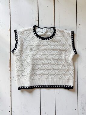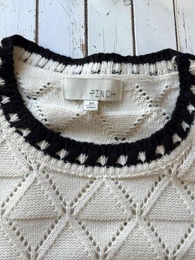 Pinch Cream Sweater Vest Black Trim Textured Knit Size M
