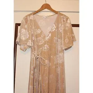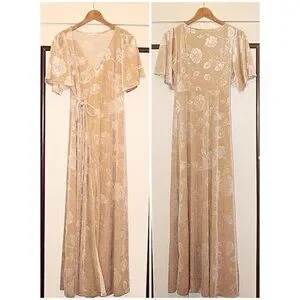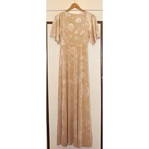 Baltic Born - “Matthews” (Meghan cut) Embossed Velvet Maxi Dress in color Champagne, size Small. Retail $118.