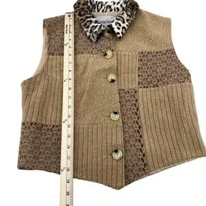 CONCINNO Patchwork Vintage Vest Leopard Collar Women's Size M Button Front