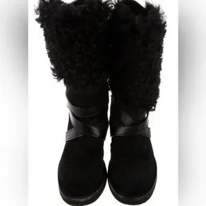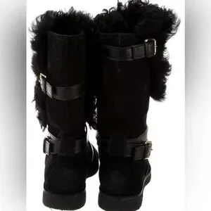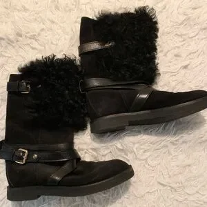 Louis Vuitton women shearling suede boots black