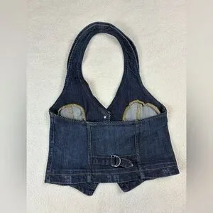 Y2K Forever 21 Denim Halter Crop Top Vest Size Small