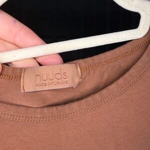 Nuuds Crew Neck Short Sleeve Tee Womens L Brown Good Curved Hem Relaxed Fit