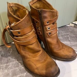 FREEBIRD - Women’s Tan Leather Ankle Boots with Strap Detail - size 9