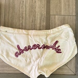 Abercrombie & Fitch White Terry Athletic Shorts with Maroon Moose Patch