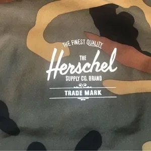 Classic camo bomber jacket by Herschel Supply Company. Snap-front closure and side pockets. Elastic cuffs and drawstring hem for a tailored fit. Subtle branded chest logo. Easy layering piece for casual looks.