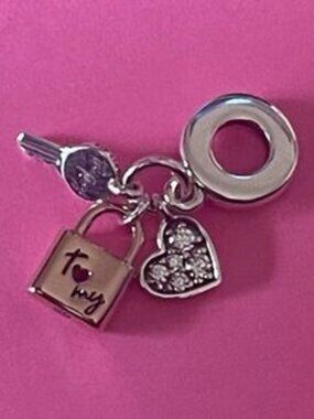 Pandora Two-tone Key, Padlock & Heart Triple Dangle Charm