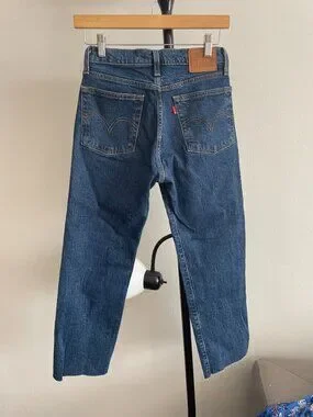 Levis wedgie straight jeans. Size 26. Raw hem. 26 inch in-seam.