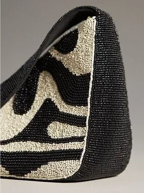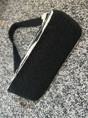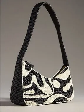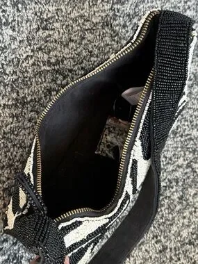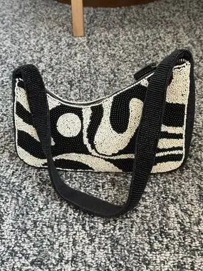 - Anthropologie asymmetric beaded shoulder purse in black and white