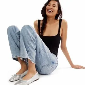 - Relaxed fit through hip and thigh that flatters without swamping a smaller frame