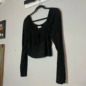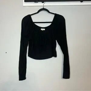 Madewell Black Rib Square Neck Long Sleeve Crop Top Size XL