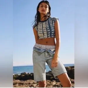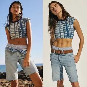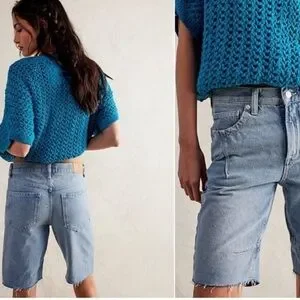 NWT WE THE FREE Ghost Town High Rise Long Short Raw Hem Size 28
