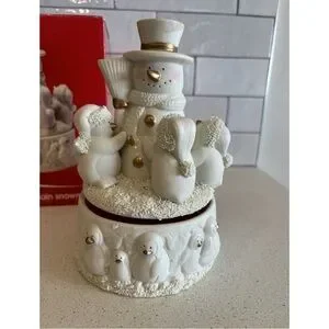 Elevate your holiday decor with the charm of a vintage Ivory Bisque music box. This exquisite piece, featuring a delightful snowman motif, plays a melodic tune as it spins, bringing a touch of nostalgia and festive cheer to any room. Measuring at 8.35 inches in height with a base diameter of 5 inches, this medium-sized figurine is perfectly sized to be a standout addition to your seasonal collection. Crafted with attention to detail, the snowman figurine is a testament to classic design and craftsmanship. Its off-white color and bisque finish evoke a warm, inviting feel, while the round shape and snow pattern lend a sense of whimsy and joy. Ideal for those who appreciate the beauty of seasonal decor and the enchantment of music boxes, this piece is sure to be a cherished heirloom.