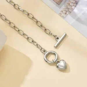 Design: Oval-link chain with front toggle clasp and heart pendant