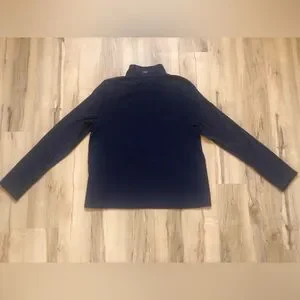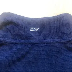 Lightweight navy quarter-zip pullover. Smooth performance fabric for layering. Stand collar with half-zip for easy adjustments. Minimal Vineyard Vines logo at hem.