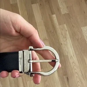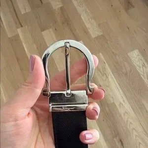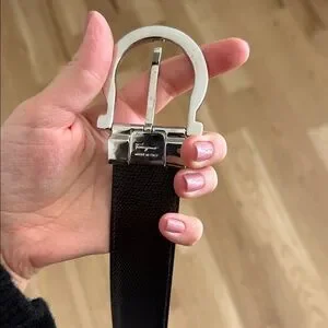 Salvatore Ferragamo Reversible Black Brown Leather Belt Silver Gancini Buckle