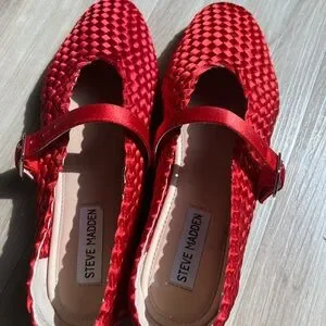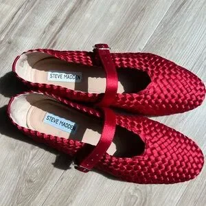 Steve Madden Red Woven Mary Jane Flats with Buckle Strap