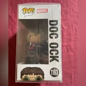 Funko Pop! Doc Ock from Spider-Man: No Way Home. Features green sunglasses and metallic silver tentacles. Detailed sculpt and painted accents. Great for display or collecting.