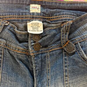 Comfortable wide-leg women’s jeans in a versatile dark blue wash. Soft, durable denim for everyday wear. Flattering mid-rise fit with practical front and back pockets. Easy to style for casual or dressed-up looks. Brand H2j Productior. Short stressed jeans for a modern young style.
