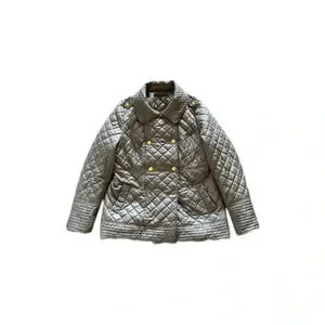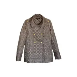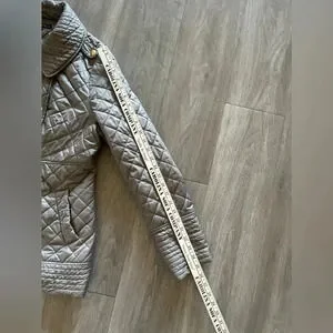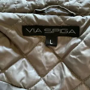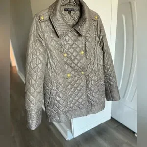 Via Spiga Gray Puffer Jacket Gold Buttons Women’s Large NWOT